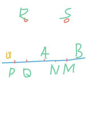 щие на прямой а, но не лежащие на отрезке AB; в) точки R и S,