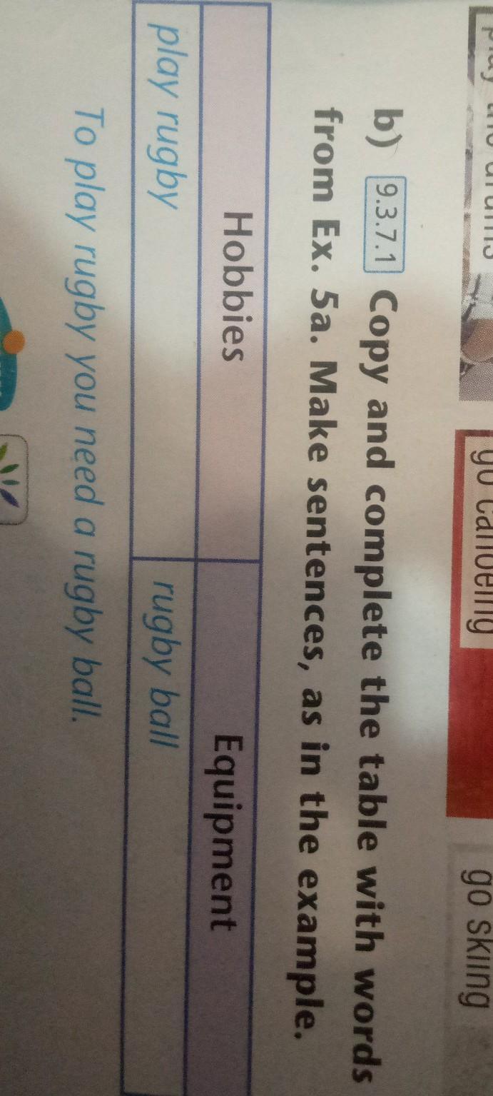 Copy and complete the table with words from Ex. 5a. Make sentences, as in the example.