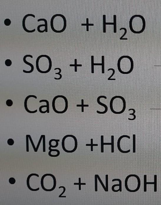 - CaO + H₂O ⇒ Ca(OH)₂.