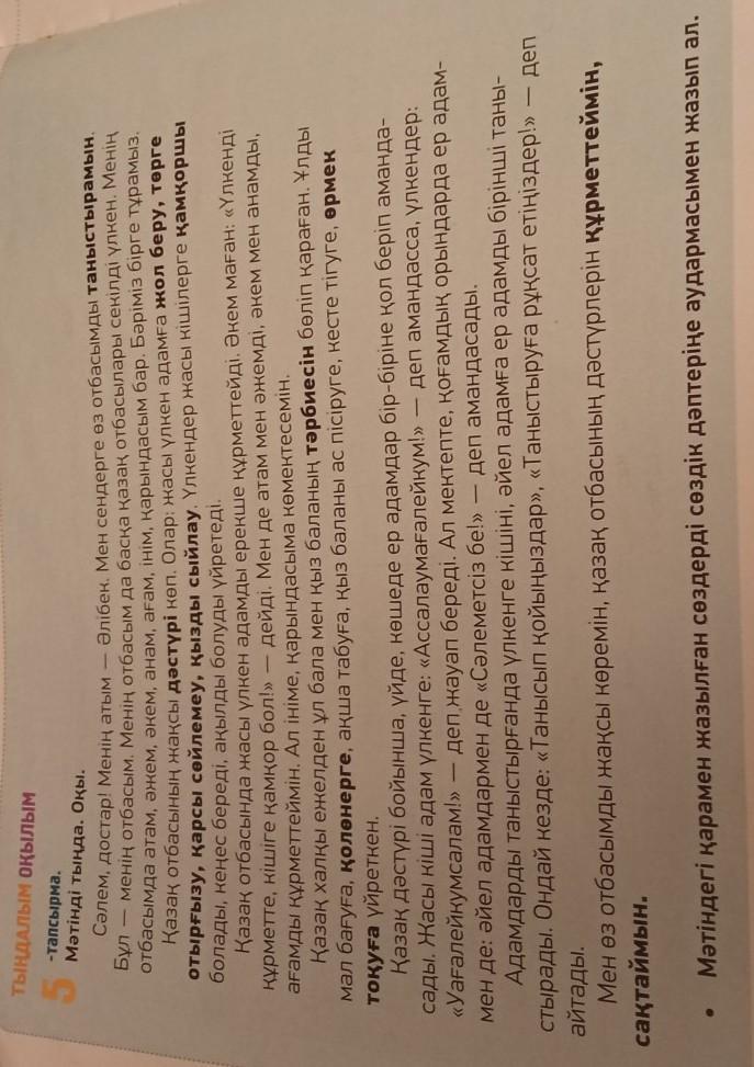 6 -тапсырма. Мәтіндегі тәуелдік жалғауы жалғанған сөздерді теріп жаз. Үлгі: отбасы + М