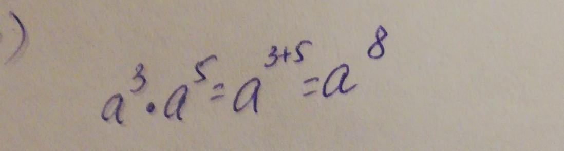 при умножении показатели степеней складываются, если у них основание одинаковое. в данном случае основанием является а
