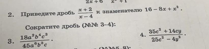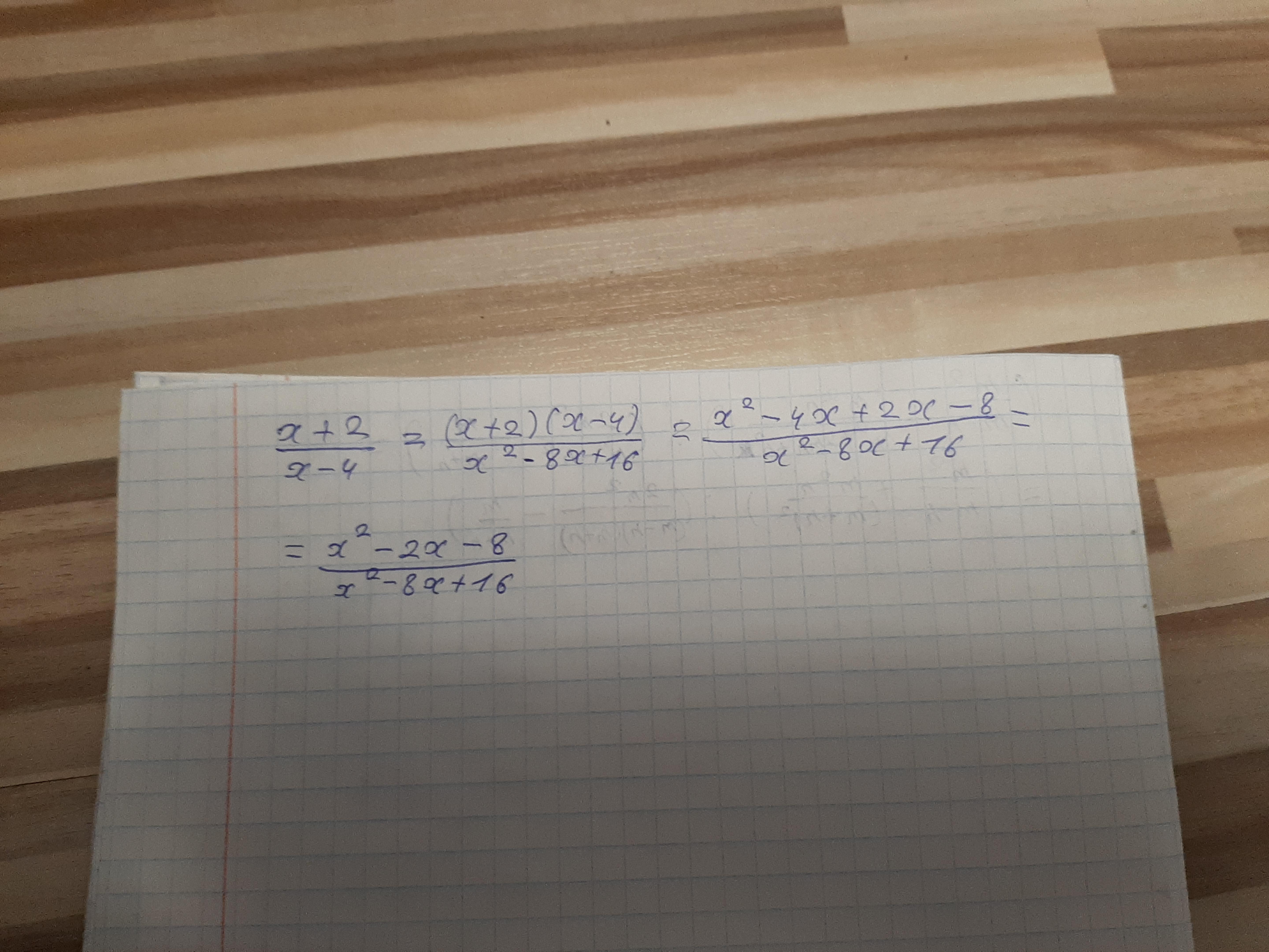 Под знаменателем если раставить цифры и знаки получится x²-8x+16
