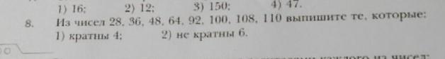 2) не кратны 6, значит не делятся на 6: 28:6= не делится нацело +, 36:6=6, делится нацело -, 48:6=8 -, 64:6= не делится нацело +, 100:6= +, 108:6=18 -, 110:6= +