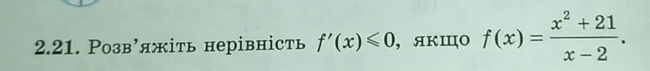 f(x) = ( x² + 21 )/( x - 2 ) ; f '(x) ≤ 0 ;