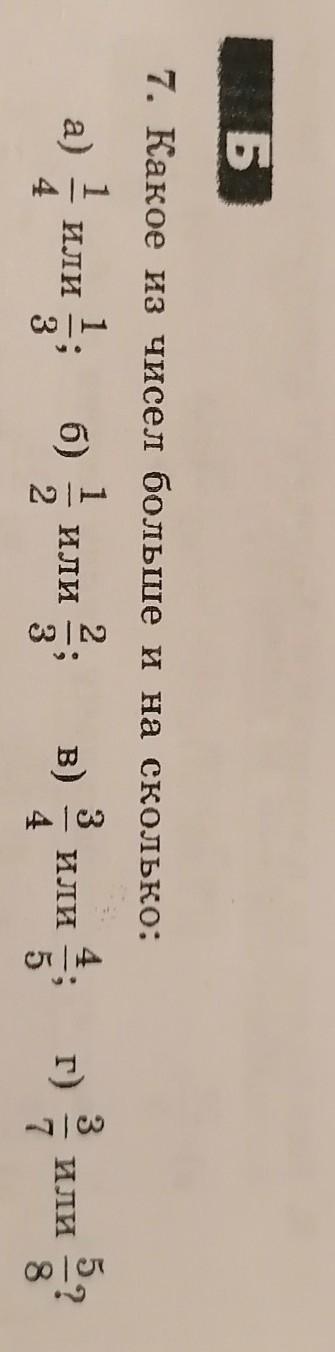 3/7 или 5/8 - Приведём к общему знаменателю 24/56 и 35/56, 35/56 будет больше 24/56 на 11/56.
