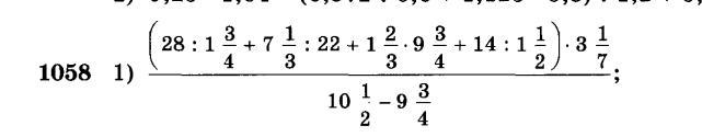 [(28 : 1 3/4 + 7 1/3 : 22 + 1 2/3 · 9 3/4 + 14 : 1 1/2) · 3 1/7] / [10 1/2 - 9 3/4] =