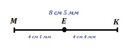 СПАСИТЕ ДАЮ 50 БАЛЛОВ!!! Начертите отрезок МК, длина которого равна 8см 5 мм, отметьте на нём точку Е. Запишите все образовавшиеся на рисунке отрезки и измерьте их длины
