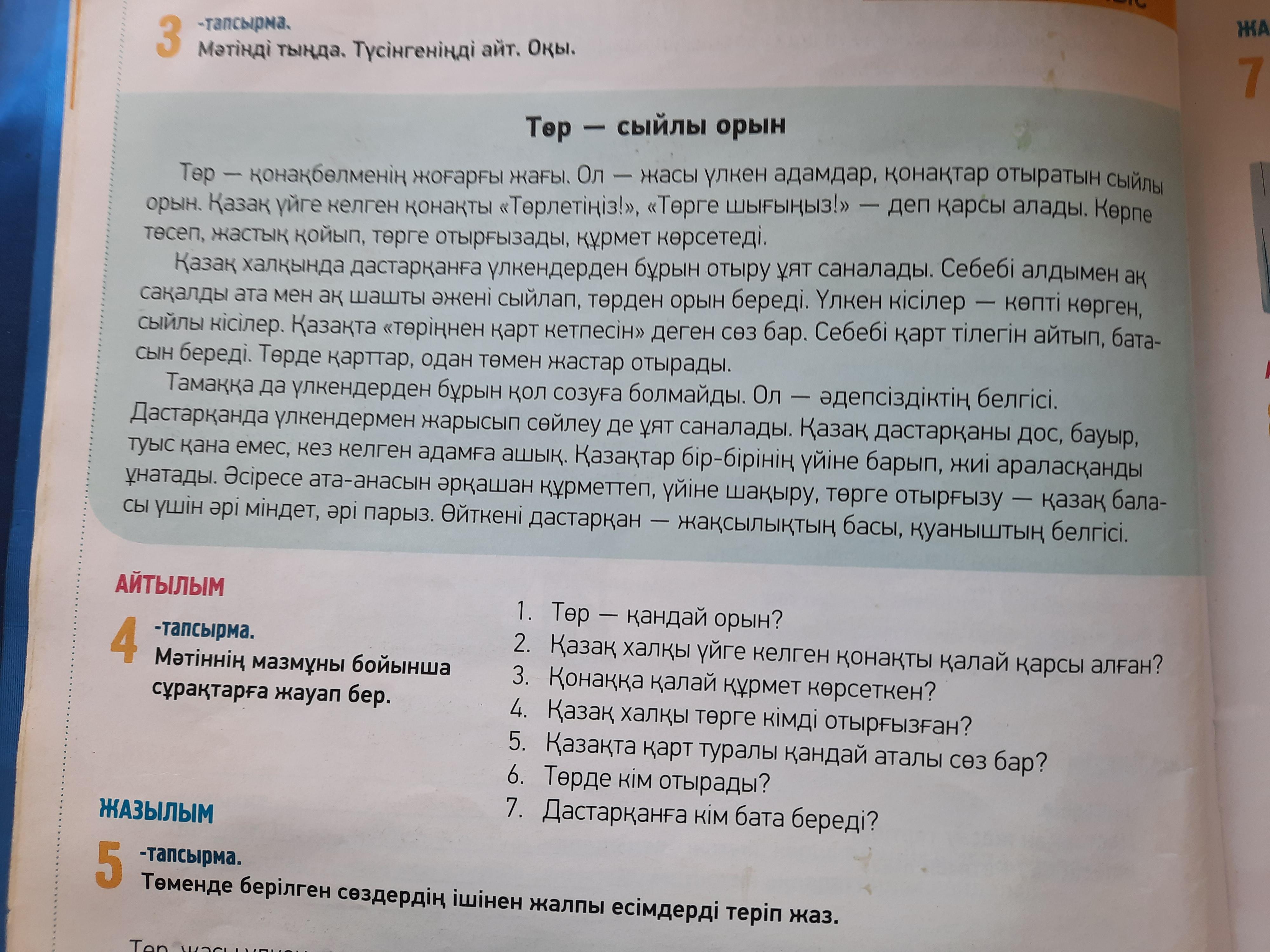 4.Қазақ халқы төрге жасы үлкен,силы адамдарды отырғызған.