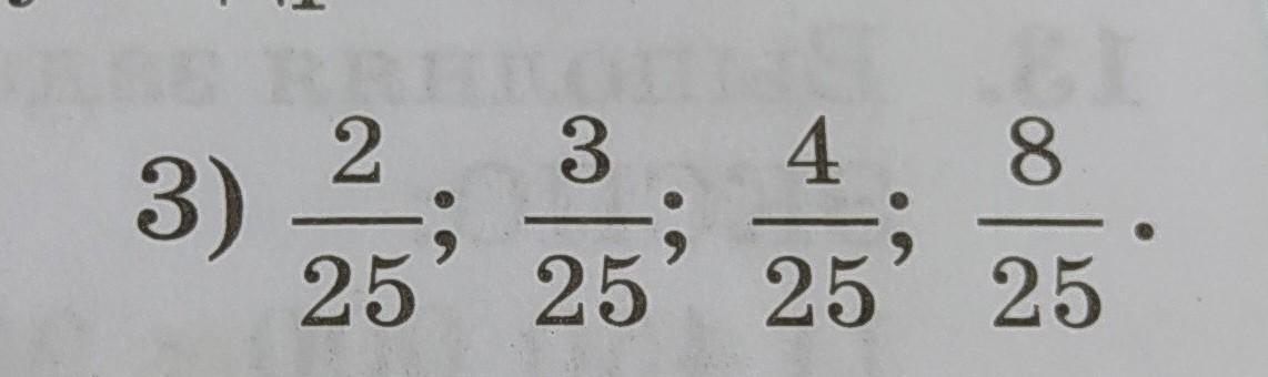 3) 2/25 = 0,08; 3/25 = 0,12; 4/25 = 0,16; 8/25 = 0,32