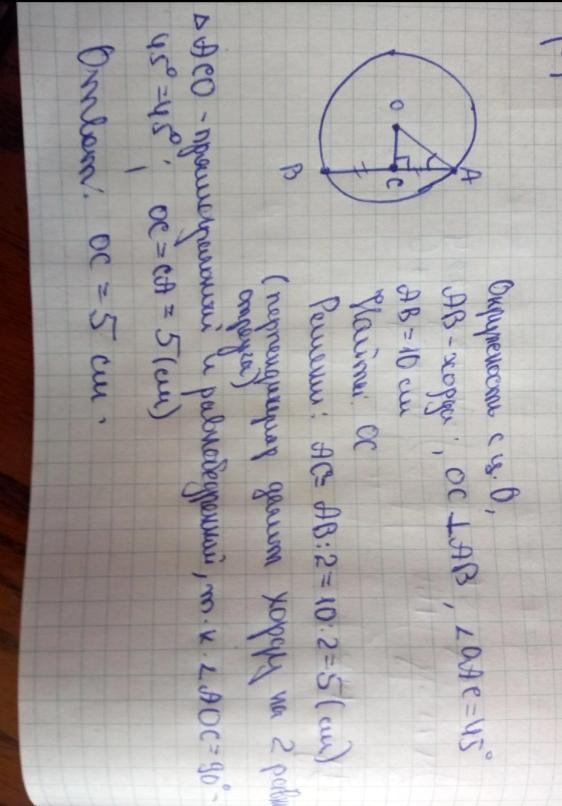 расстояние от центра окружности о до середины н хорды ав равно корень 41 найдите радиус окружночти есои длина хорды ав 40