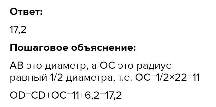 AB это диаметр, а OC это радиус равный 1/2 диаметра, т.е. OC=1/2×22=11