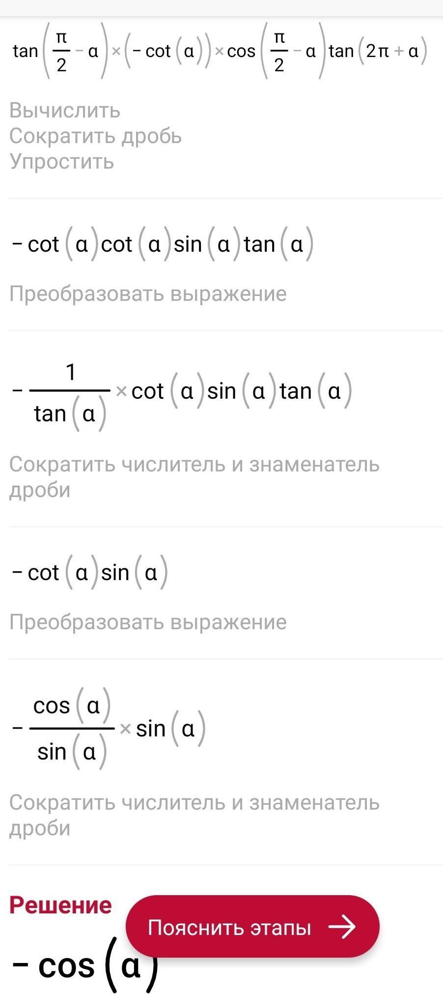 Ответ таков: -cos(a) Поставьте как лучший ответ