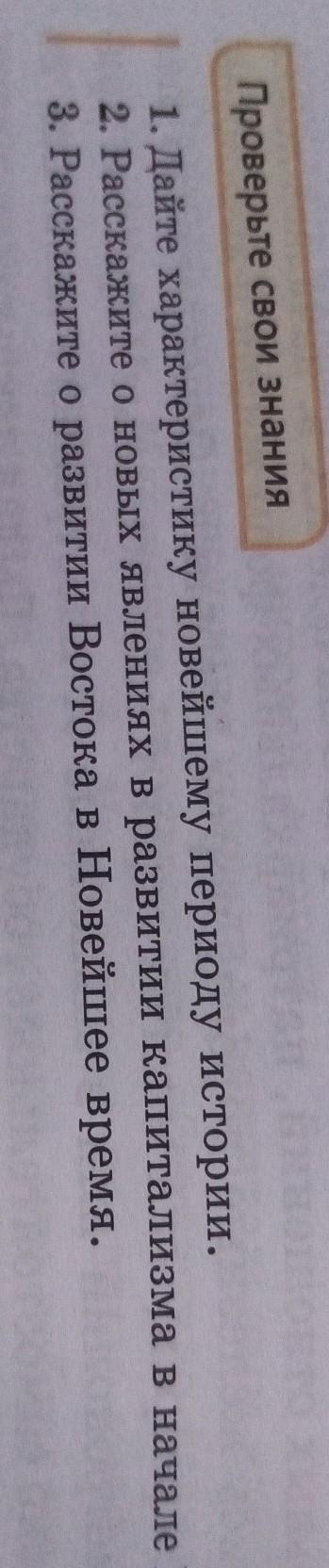 1. Дайте характеристику новейшему периоду истории. 2. Расскажите о новых явлениях в развитии капитализма в начале XX в. 3. Расскажите о развитии Востока в Новейшее время.