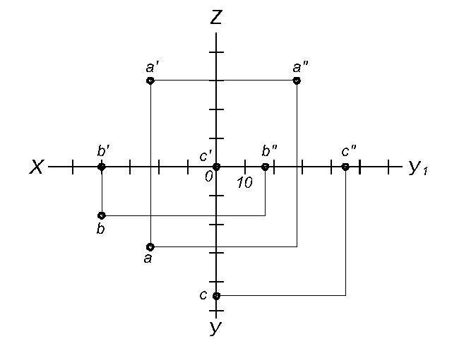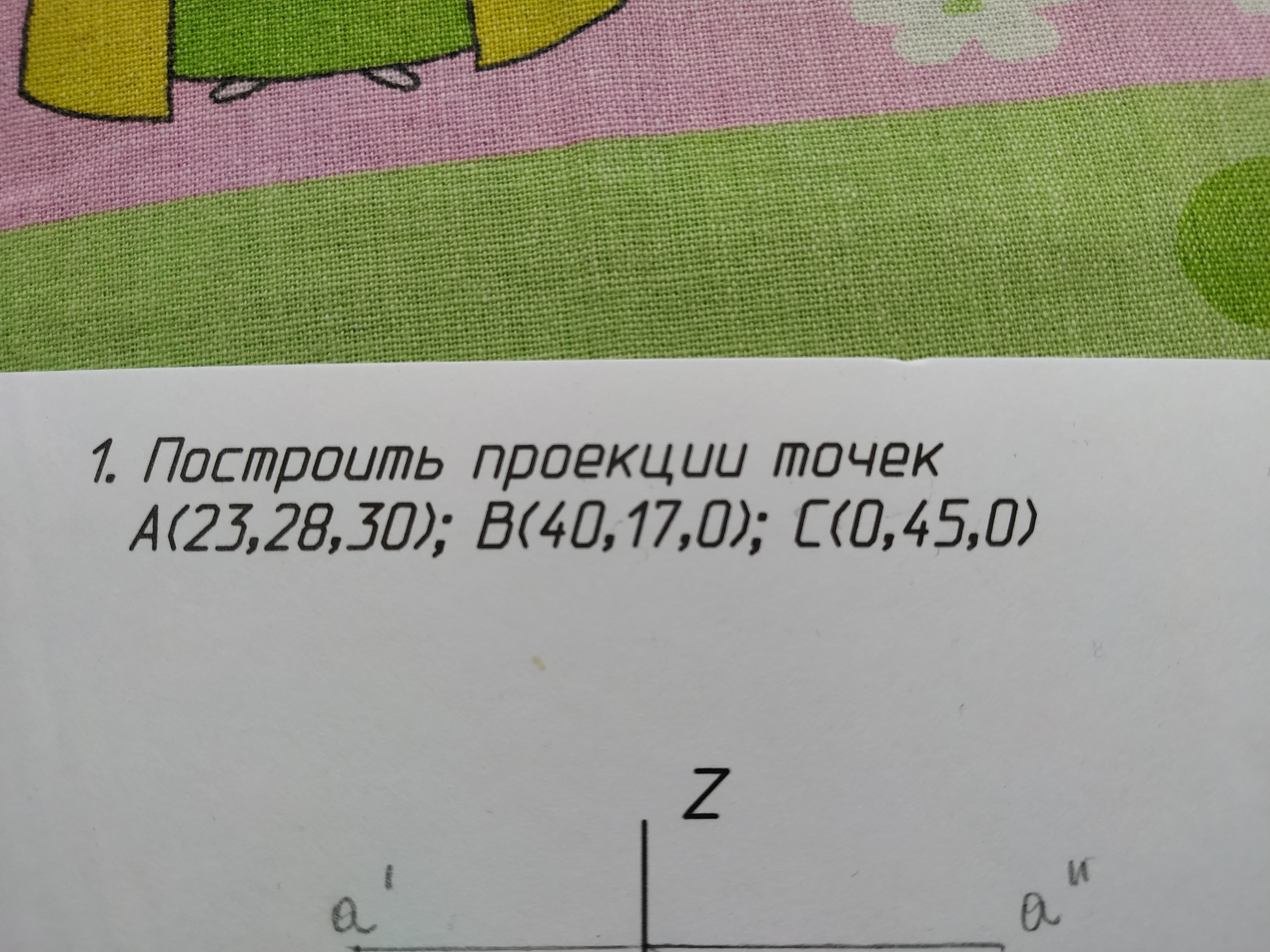 Помогите пожалуйста построить через систему координат в начертательной геометрии