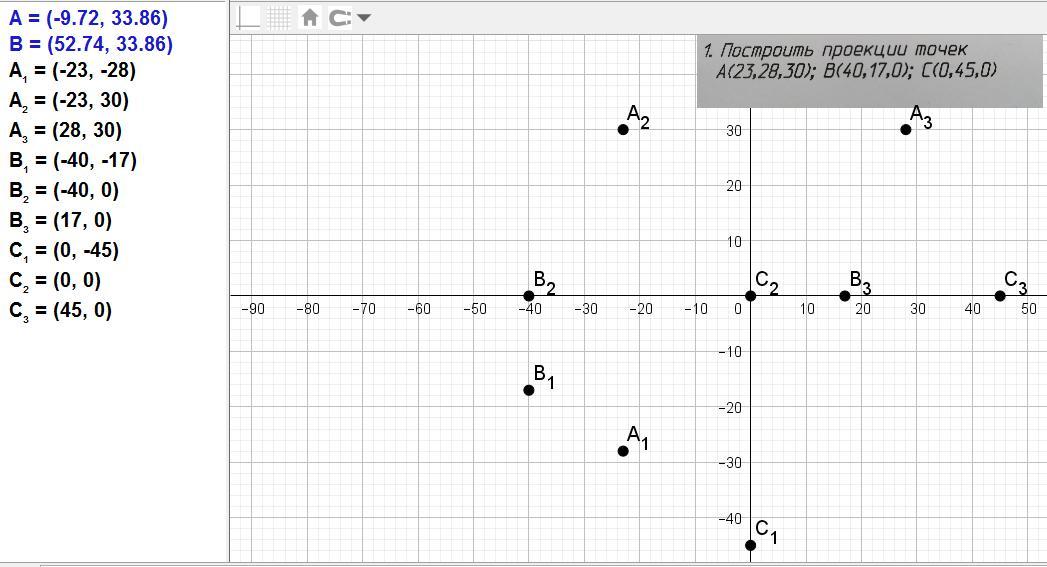 На отрицательные координаты не обращать внимание - это так показывает программа GeoGebra.