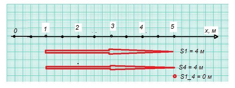 S(1_4) = x(4) - x(1) = 5 - 5 = 0 м