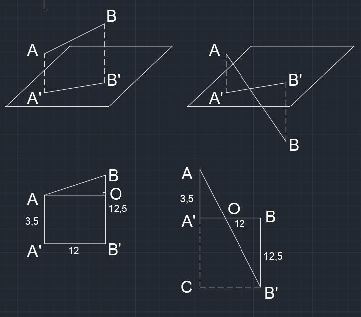 Второй случай, когда AB пересекает плоскость.