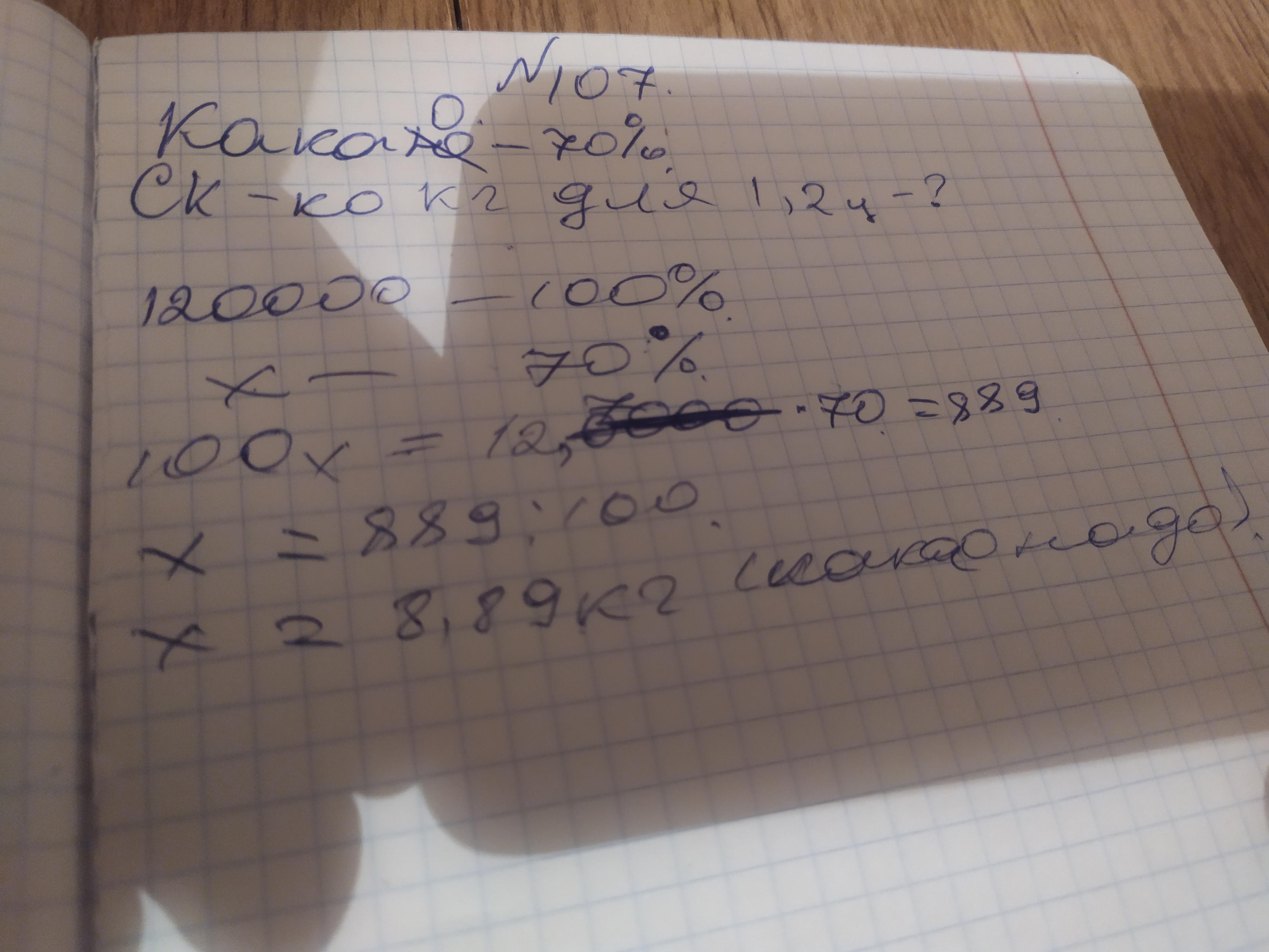 Шоколад содержит 70% какао. Сколько килограмм какао потоебуется для 1,2 центнеров такого шиколада?