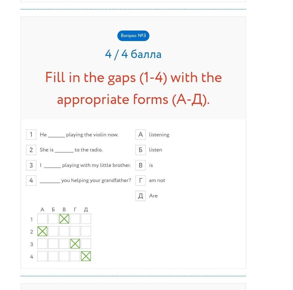Fill in the gaps (1-4) with the appropriate forms (А-Д).
