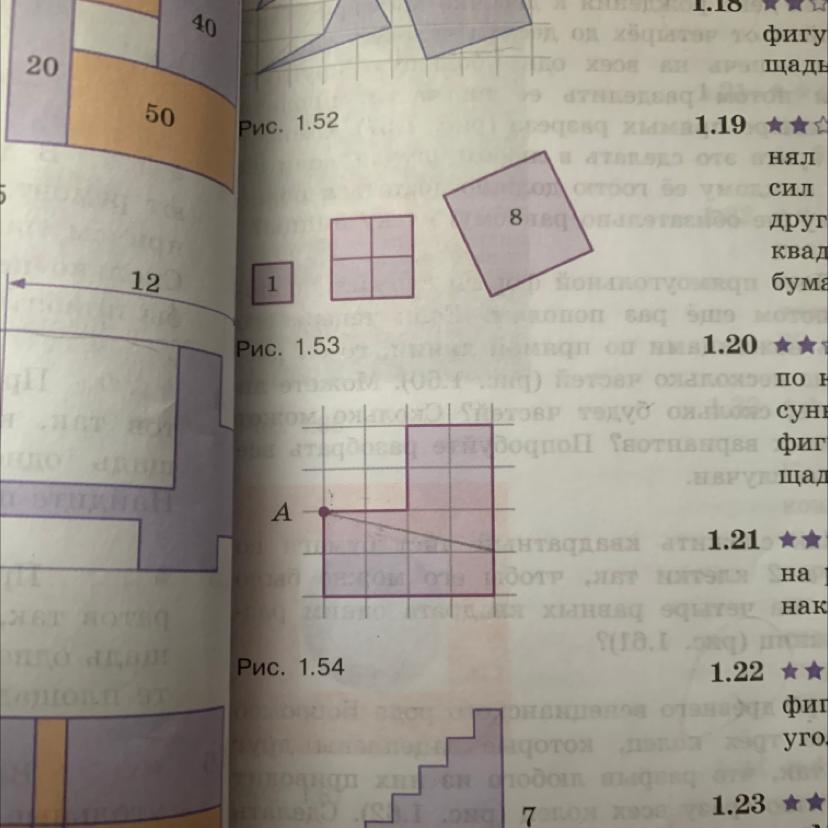 1.21 Найдите площадь ступенчатой фигуры на рисунке 1.55. Все ступеньки квадратные и одинаковые.
