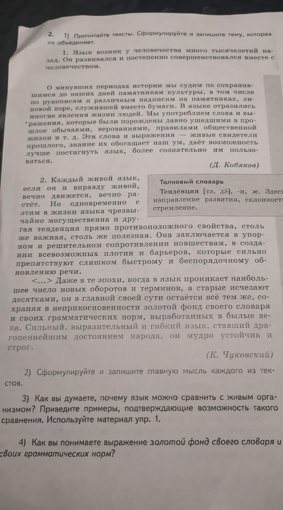 3) Как вы думаете, почему язык можно сравнить с живым орга- низмом? Приведите примеры, подтверждающие возможность такого сравнения. Используйте материал упр. 1,