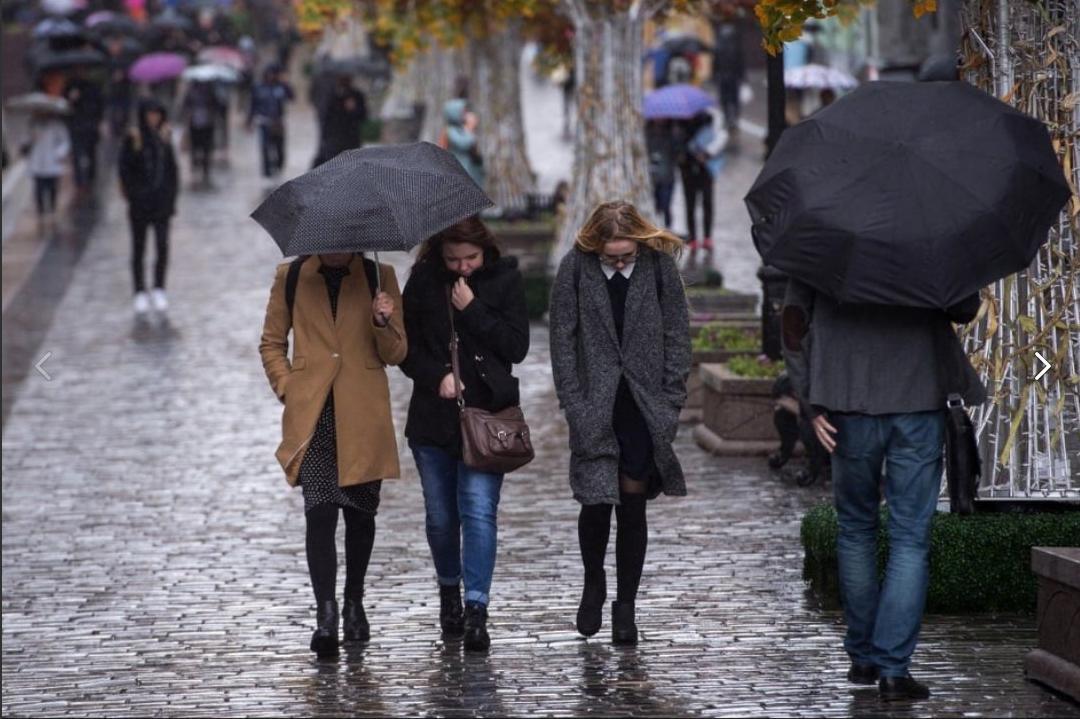 Ответ: 1: Пешеходная зона одного из больших городов ( похожа на Москву), 2: в этот день (который изображён на картинке) очень плохая и холодная погода. Идёт дождь, дует сильный холодный, как бы пронизывающий ветер, многие люди идут под зонтиками, все тепло одеты. На деревьях жёлтые листочки, которые как бы показывают нам, что это осень.