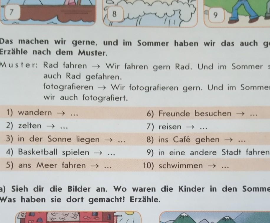 9) in eine andere Stadt fahren → Wir fahren gern in eine andere Stadt. Und im Sommer sind wir gern in eine andere Stadt gefahren.