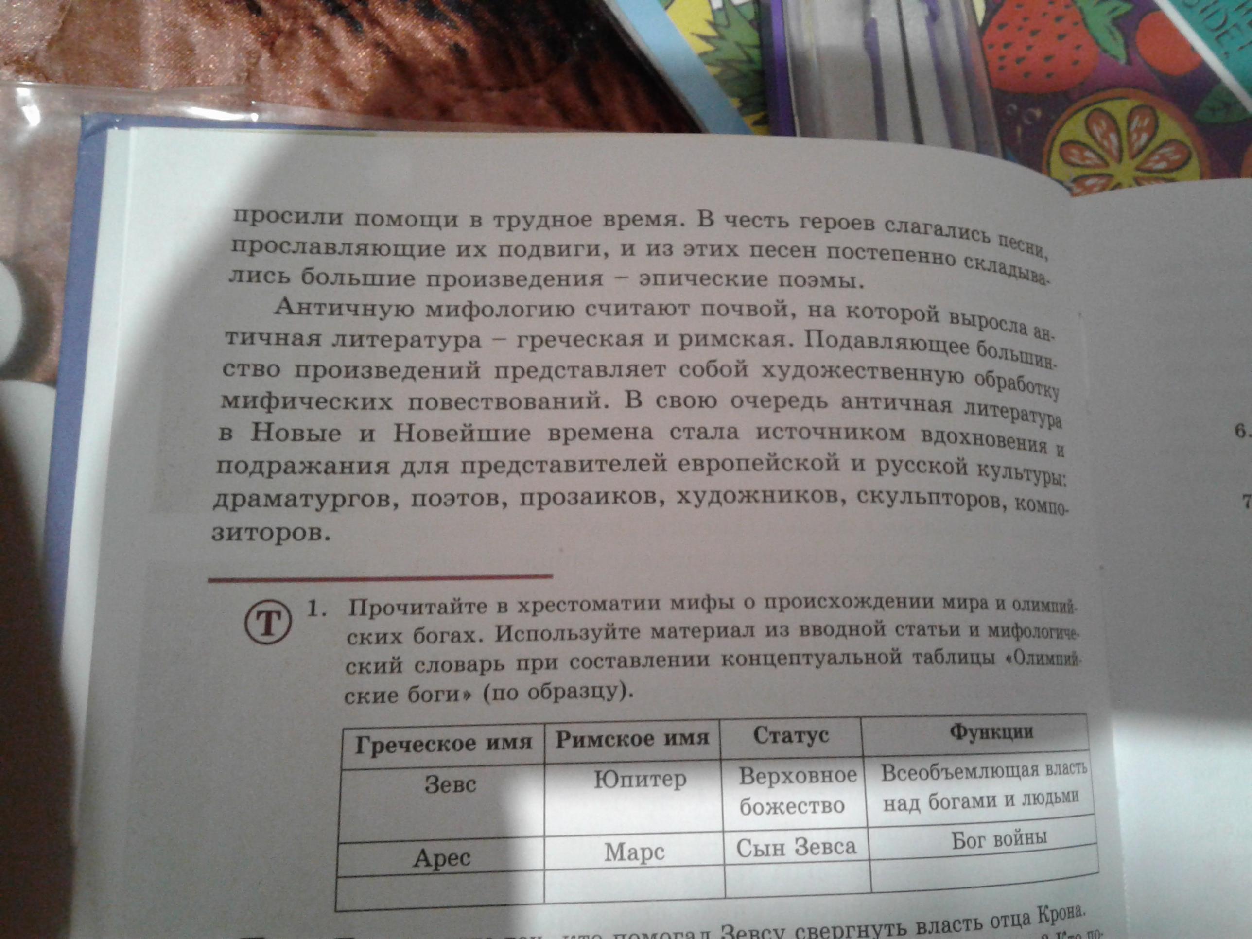 Прочитайте в хрестоматии мифы о происхождении мира и олимпийских богах. Используйте материал из вводной статьи и мифологический словарь при составлении концептуальной таблицы 《Олимпийские боги》 (по образцу).