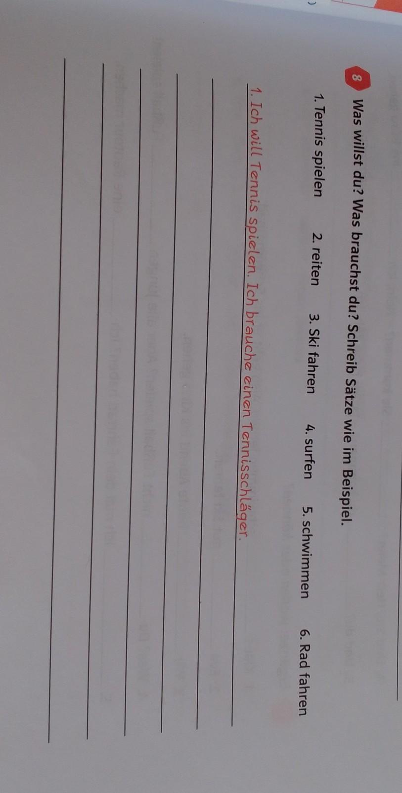5. Ich will schwimmen. Ich brauche Schwimmsachen.