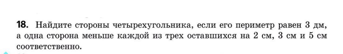 Смотри 1 сторона 5 см, вторая 7 см, третья 8см,четвёртая 10 см