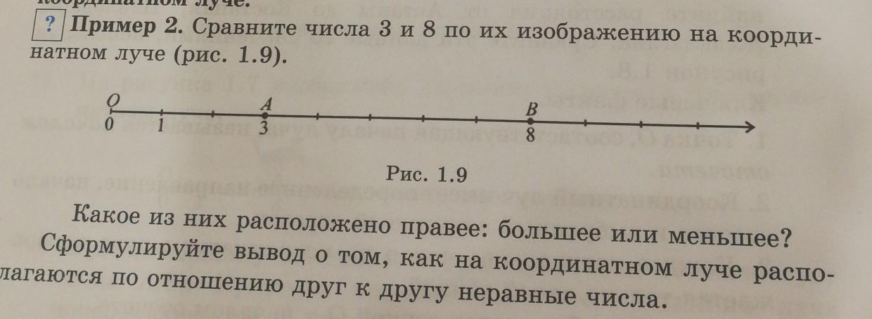 На координатном луче числа, которые располагаются правее - больше, а те, что располагаются левее- меньше