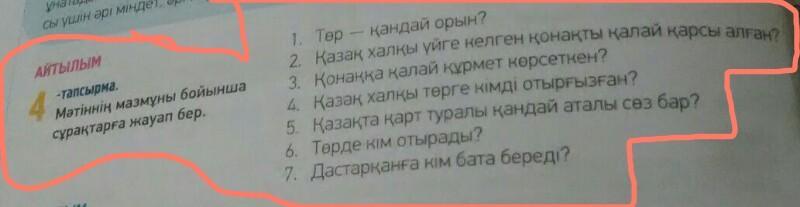 2) Қазақ халқы—қонақтарды өте қонақжай қарсы алған.