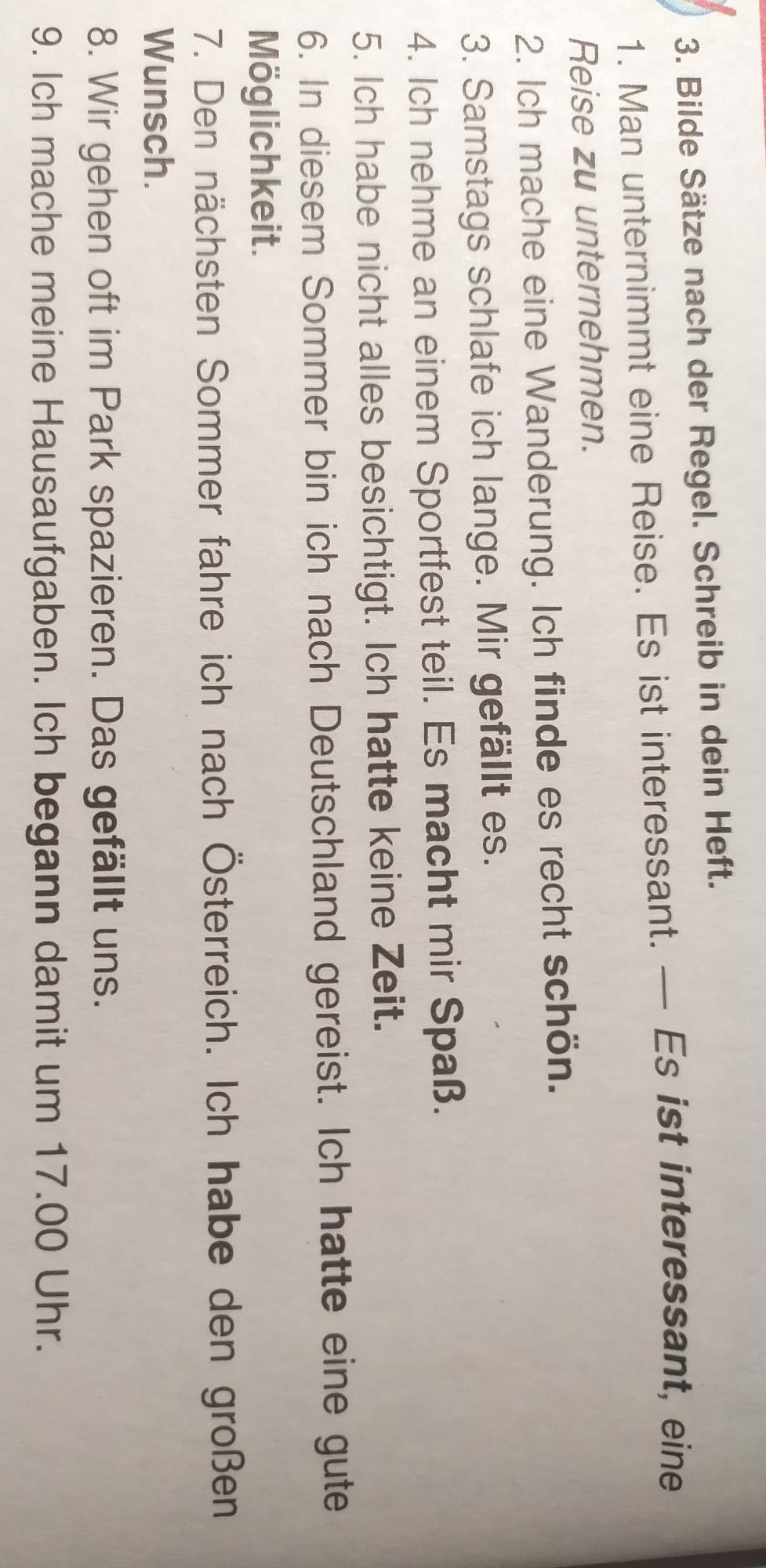 9. Ich begann damit um 17.00 Uhr, meine Hausaufgaben zu machen.