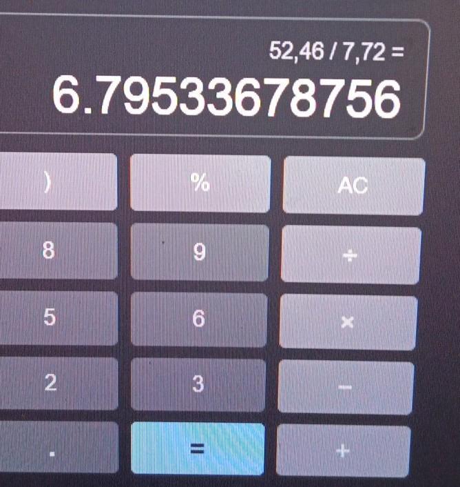 52,46:7,72= 5246:772 (тк делить на дробь нельзя)