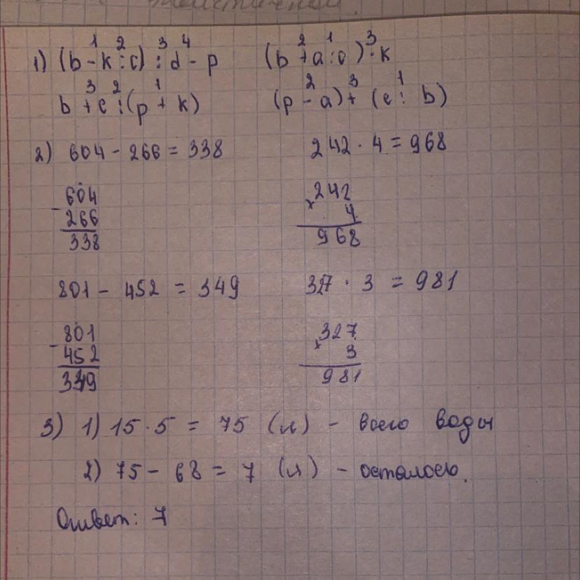 1 сначало то что в скобках (умножение/деление потом минус/плюс) потом то что вне скобок, деление и умножение всегда решаются первее