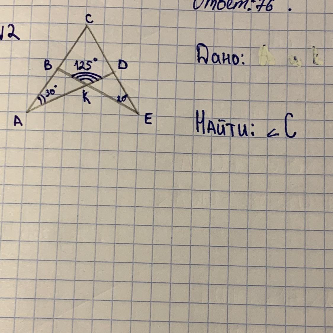 угол К = 55 (тк 180-125)