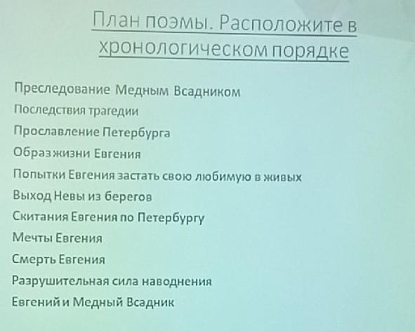 Помогите нужно написать в хронологическом порядке, Поэму А. С Пушкина "Медный всадник"