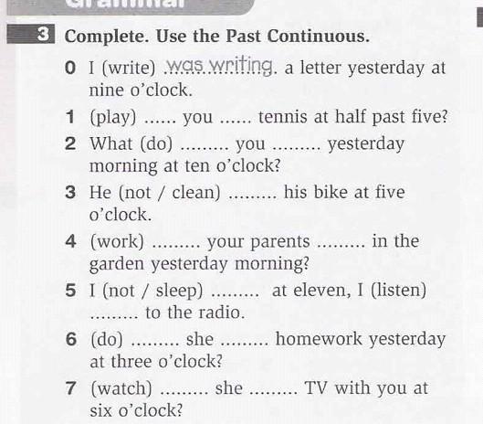 6.Did she do homework yesterday at three o'clock.