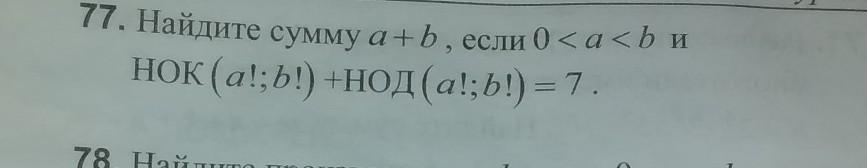 HOД(a!,b!) + НОК(a!,b!) = 7