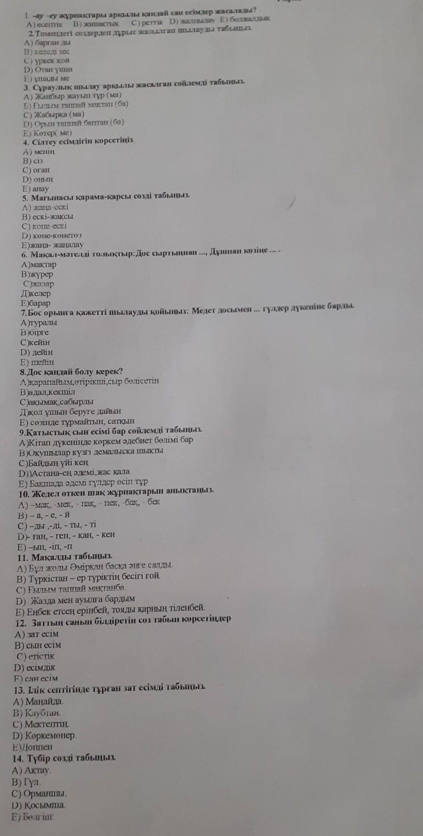 Қазақ тілі мен әдебиеті пәні бойынша жалпы білім беретін мектептер үшін бастапқы бақылау кескіні 7-сынып