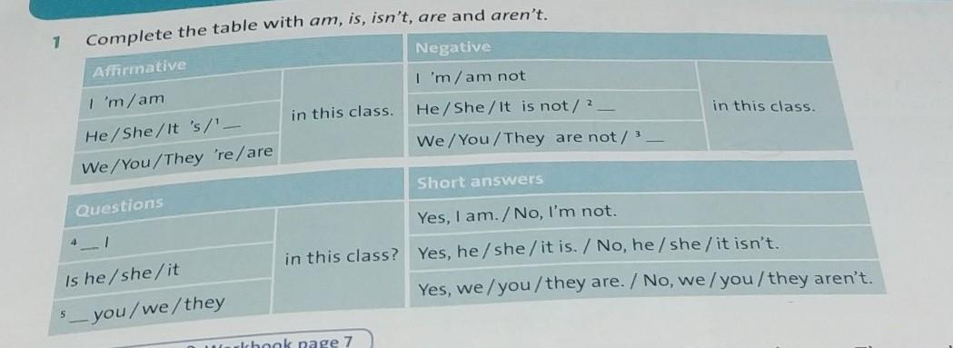 1. Is 2. Isn't 3. Aren't 4. Am 5. Are
