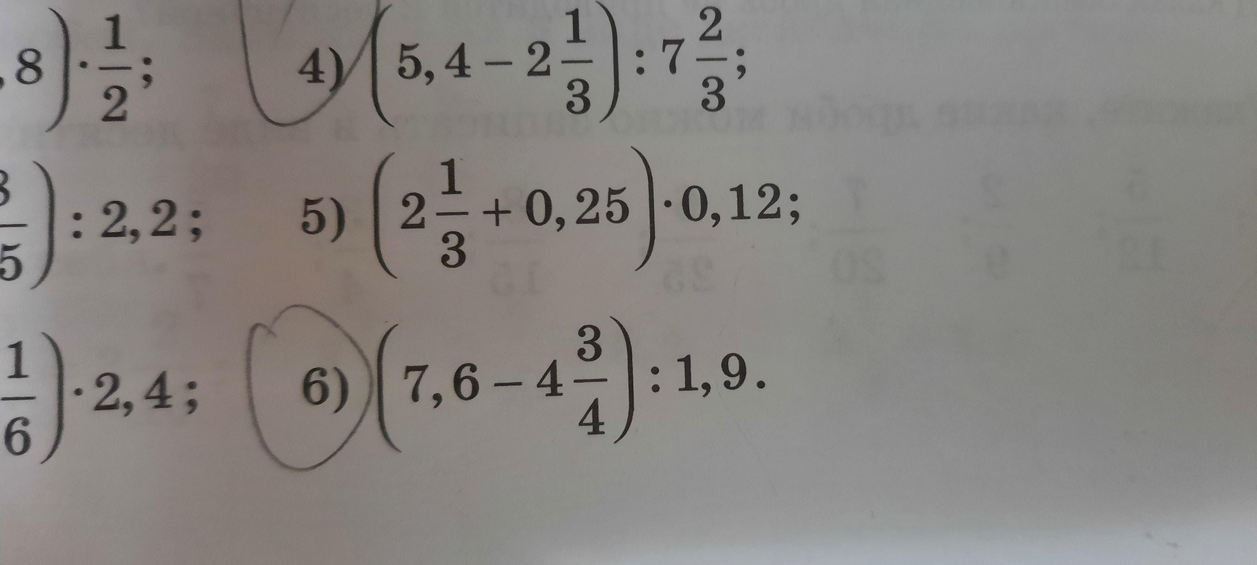 6) ( 7,6 - 4 3/4 ) : 1,9 = 1,5 .