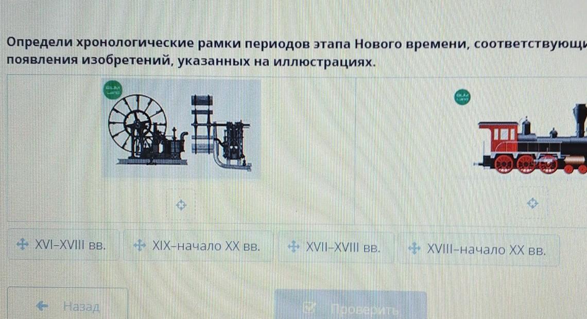 Первая картинка (если я не ошибаюсь, то это паровая машина) относится к 17 - 18 вв (это третий вариант ответа).