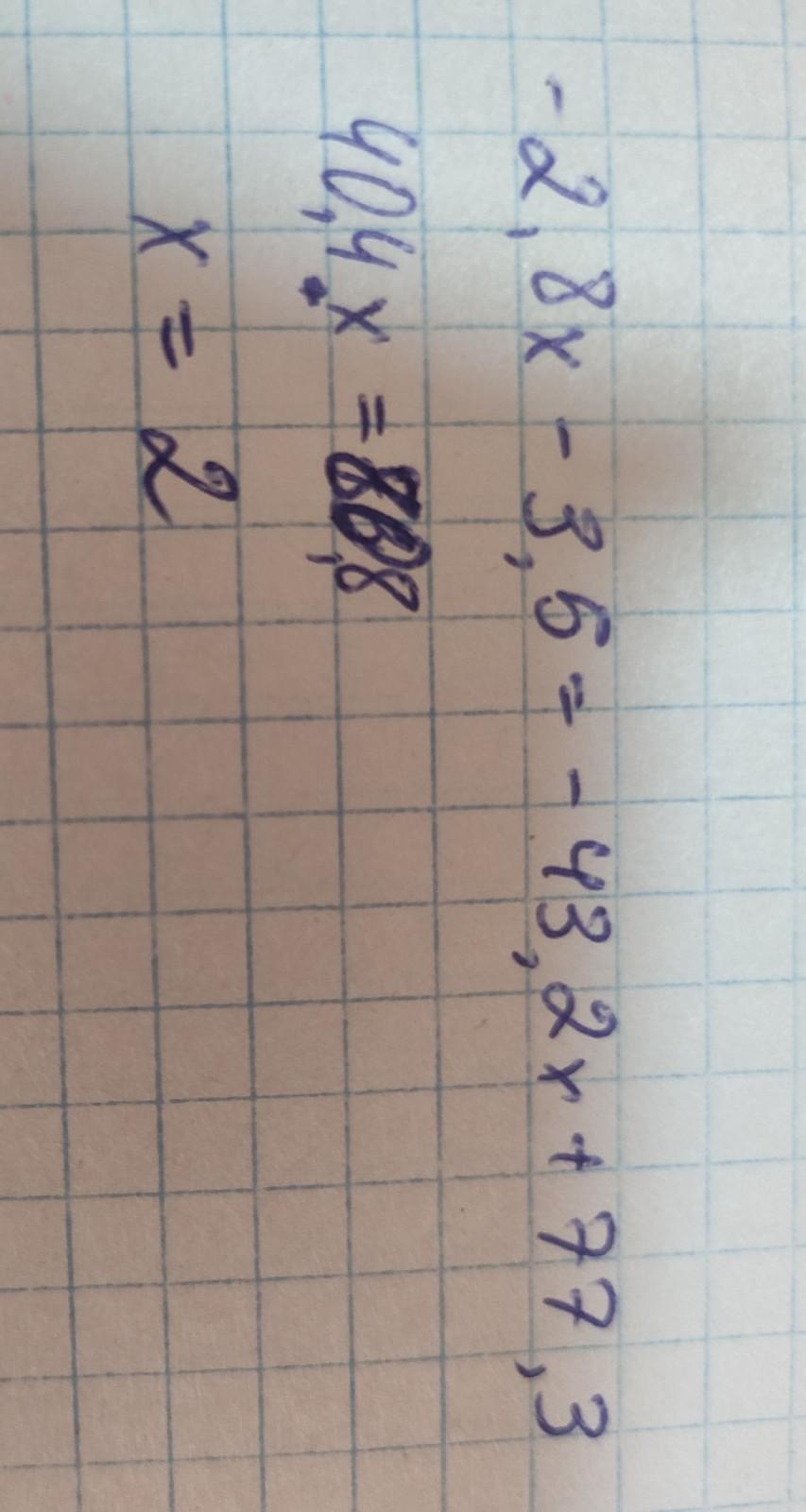 Решите линейное уравнение с одной переменной : -2,8x-3,5=-43,2x+77,3