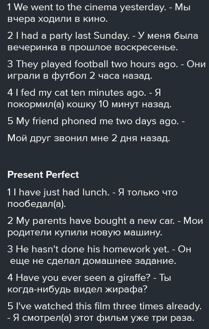 4 I fed my cat ten minutes ago. - Я покормил(а) кошку 10 минут назад.