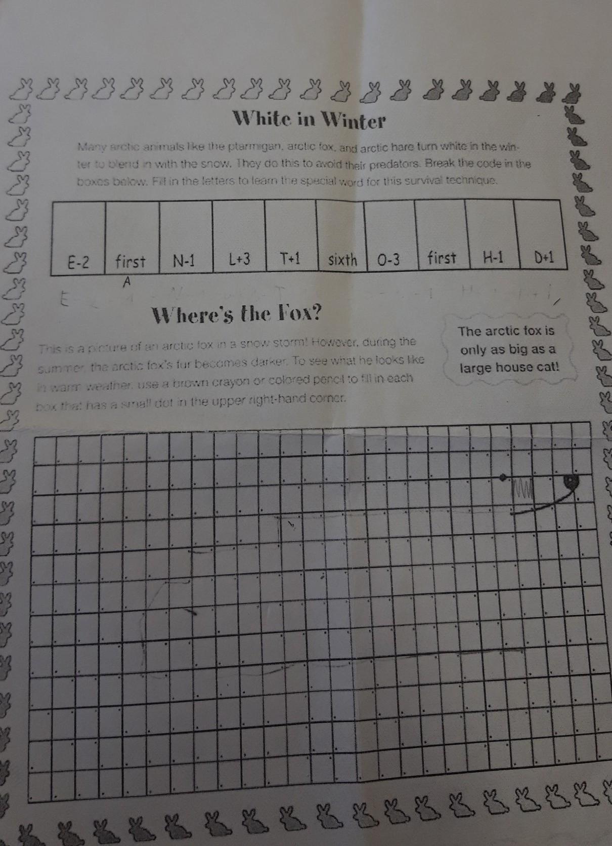 Снизу задание - зарисовать лисису. Там где точки сверху справа в каждой клеточке, другие не трогать.