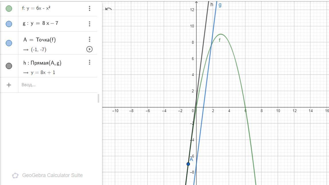 Визначити абсцису точки дотику дотичної до графіка функціїg(х) = 6х - х², яка паралельна прямій у = 8х - 7.