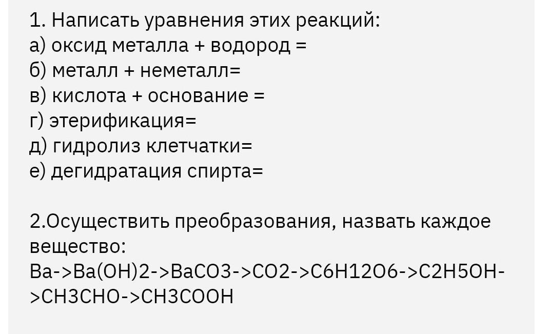 1. а) CuO + H2 =(t)=> Cu + H2O (металл должен быть правее Al)