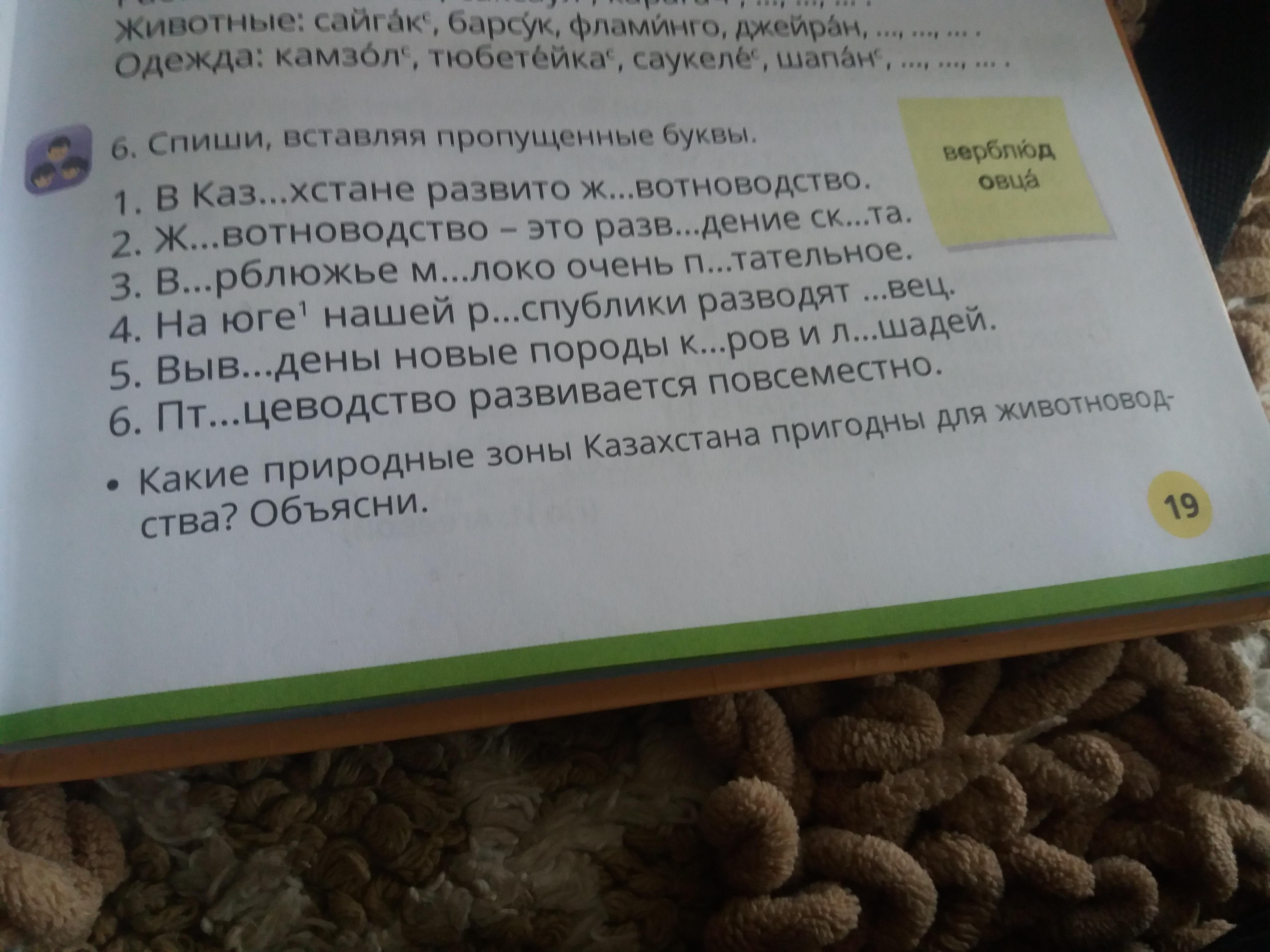 1. В казахстане развито животноводство.
