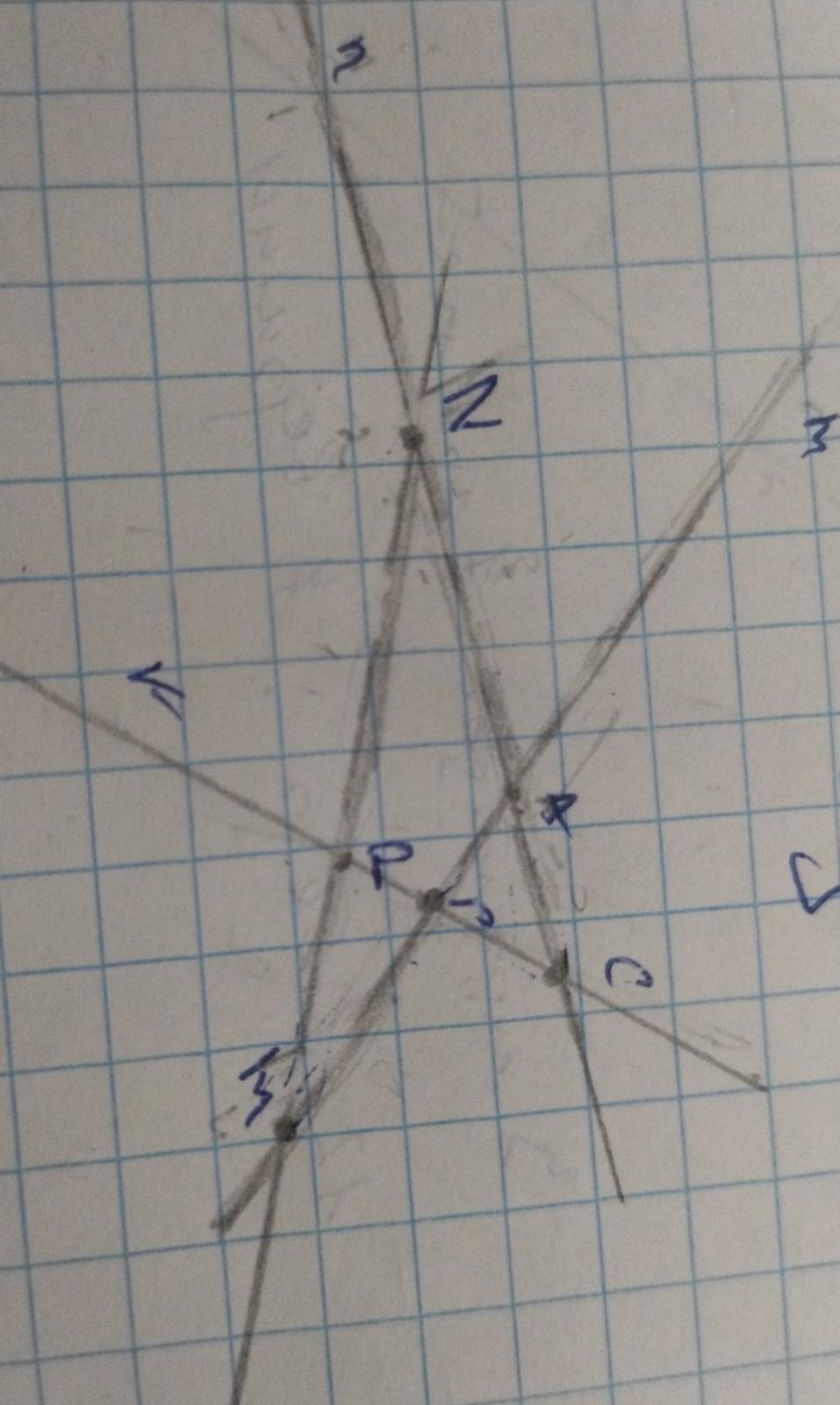 изобразите прямые m и n, которые пересекаются в точке A. на прямой m отметьте точку M, на прямой n - точку N. проведите прямую MN. сколько всего отрезков получилось на рисунке? какую фигуру образуют эти отрезки? проведите прямую k, которая пересекает прямые m, n и MN и не проходит точки A, M и N. Сколько теперь отрезков изображено на рисунке? на сколько частей указанные четыре прямые прямые разбили плоскость?